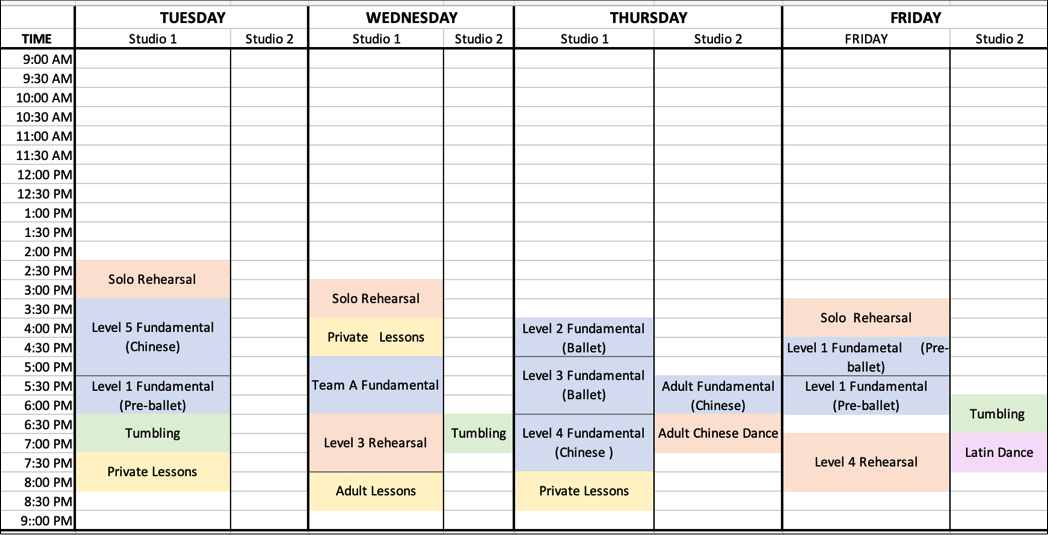 Designed for experienced dancers ages 15 to 18 dedicated to elevating their skills in Chinese Dance to a professional level. In these advanced classes, students delve deeply into the artistry and technical precision of traditional Chinese dance forms, mastering complex choreography and nuanced movements that require strength, flexibility, and emotional expression. Dancers refine their performance abilities, focusing on dynamic storytelling, character portrayal, and stage presence. Level 5 dancers also explore specialized techniques such as classical Chinese dance styles like classical ballet and folk dance, as well as contemporary fusion styles that blend traditional and modern elements. Through rigorous training and artistic exploration, Level 5 dancers emerge as versatile performers with a deep appreciation for the cultural heritage and artistic traditions of Chinese dance.